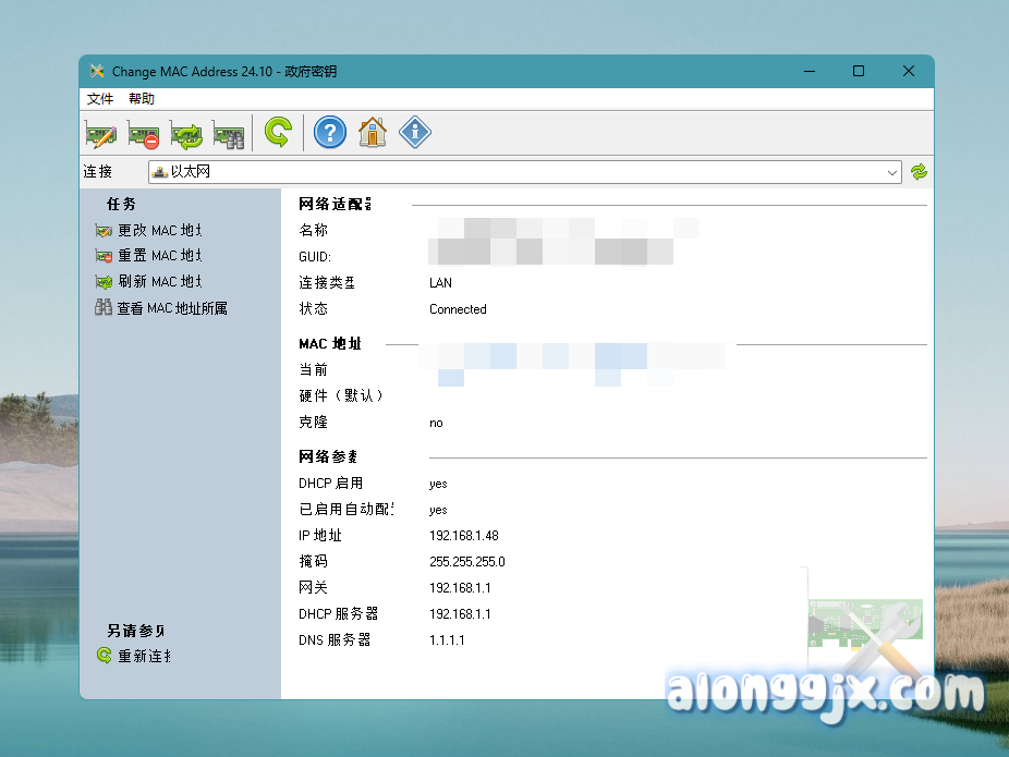 - MAC 地址查看与更改:该工具可以显示网络适配器的当前 MAC 地址以及制造商信息,并允许用户通过几个简单的步骤来更改 MAC 地址。