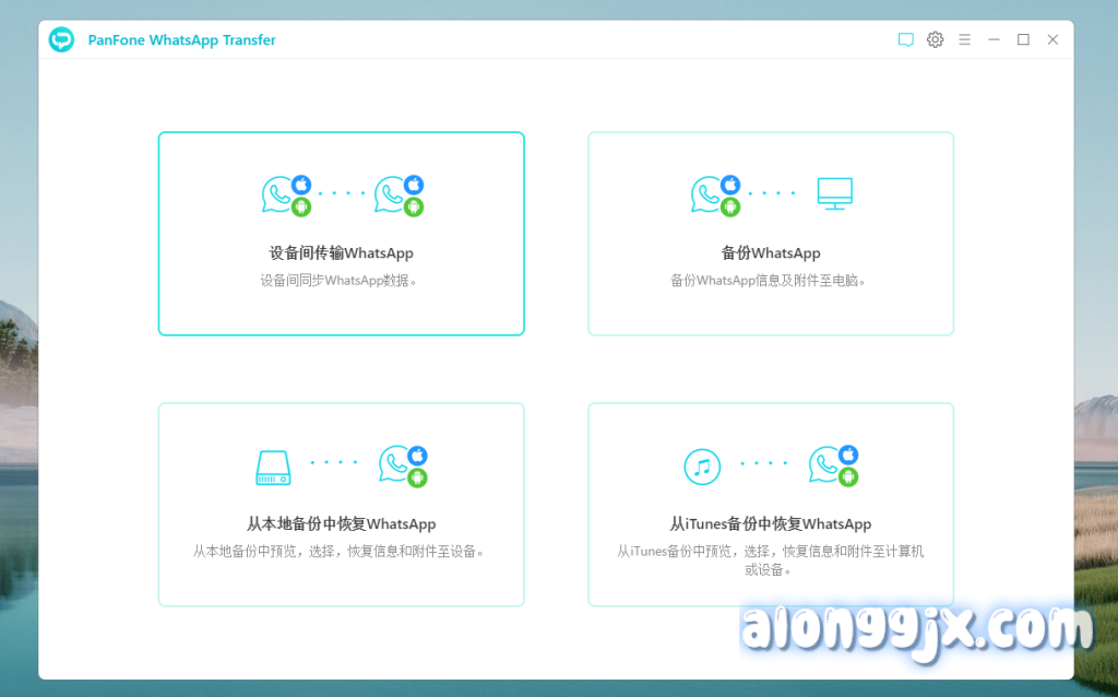 PanFone WhatsApp Transfer 是一款WhatsApp 数据传输工具,还能安全备份、恢复 WhatsApp 数据等,支持 iOS 和 Android 设备之间直接传输 WhatsApp 数据,以及将 WhatsApp 聊天和附件备份到电脑,并支持将 iTunes 备份的 WhatsApp 数据恢复到 Android 或 iOS 设备,同时支持将 WhatsApp 备份导出为 HTML 和 CSV 文件并打印。
