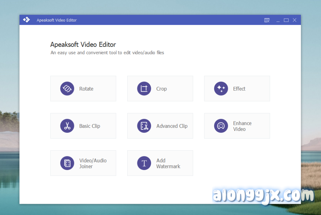 Apeaksoft Video Editor 是一款适用于 Windows 和 Mac 的专业视频编辑软件,提供多种编辑功能,如旋转、剪辑、裁剪、添加滤镜和水印、增强视频质量、转换视频格式等,支持多种视频格式,并且操作简单,适合个人和专业使用。