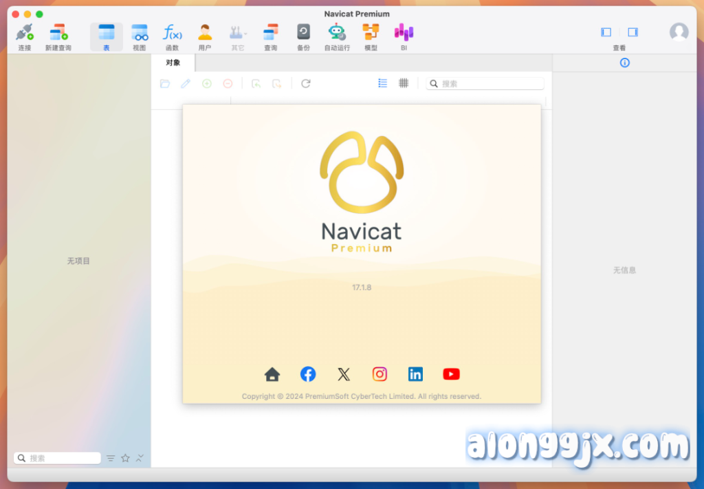 - 统一的多数据库连接与管理:这是 Navicat Premium 的立身之本。它在一个应用程序内原生支持连接超过十种不同的数据库系统。你可以在同一个窗口左侧的导航窗格中同时看到本地 MySQL 实例、云上的 PostgreSQL 集群、以及内网的 MongoDB 副本集,并像操作本地文件夹一样管理它们。这种统一性极大地简化了混合架构下的日常管理工作。