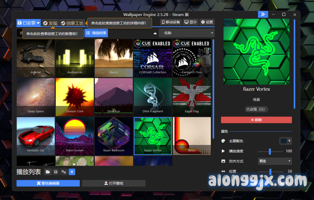 - 社区分享:通过 Steam 创意工坊,用户可以免费分享和下载超过一百万张壁纸,并且每天都有新壁纸上传。