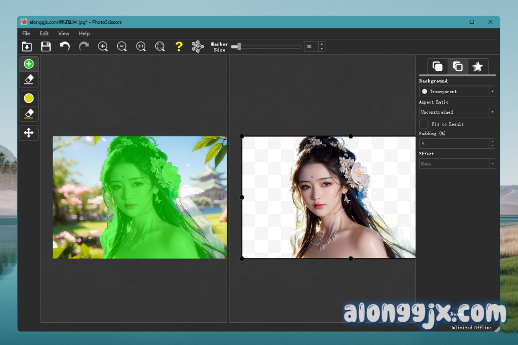 - 透明对象处理:透明标记工具可以保留指定区域的前景和背景纹理。