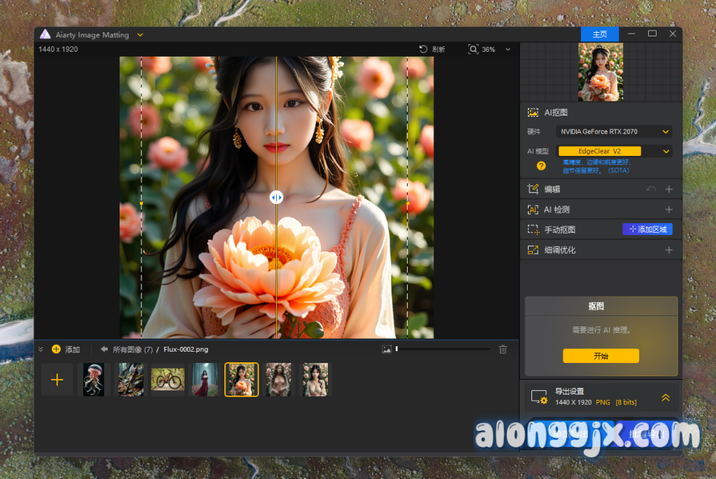 - 高精度 AI 抠图:采用先进的 alpha 抠图技术,精确处理头发、毛发和半透明物体,确保图像抠图的自然度和细节保留。