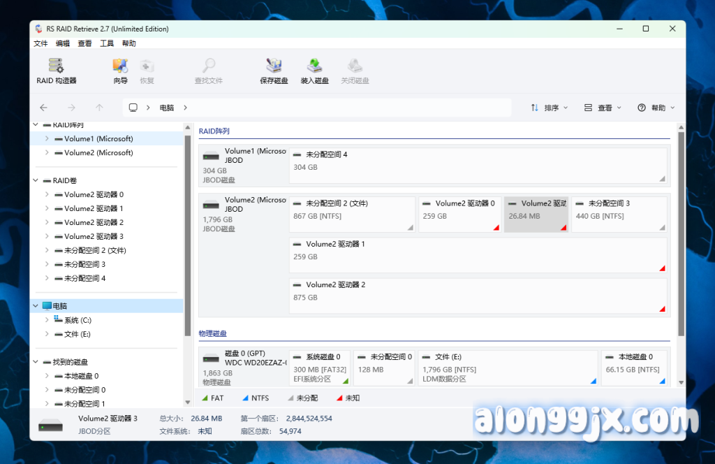 - 自动检测和修复 RAID 阵列:RS RAID Retrieve 能够自动识别并修复多种 RAID 级别的阵列,包括 RAID 0、RAID 1、RAID 4、RAID 5、RAID 6 等。