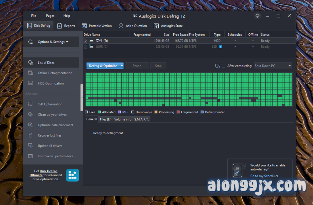 Auslogics Disk Defrag Professional 是一款高效的磁盘优化软件,专为提升硬盘和固态硬盘性能而设计,具备智能文件排列算法、启动时间磁盘碎片整理技术,以及针对 SSD 驱动器的优化算法等多项先进功能。