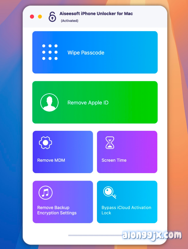 Aiseesoft iPhone Unlocker for Mac 是一款iPhone解锁软件,可以专业各种锁定状态的 iPhone、iPad 和 iPod touch 设备的工具,包括清除屏幕密码、移除 Apple ID、恢复和删除 Screen Time 密码、去除 MDM 限制以及清除 iTunes 备份加密设置。