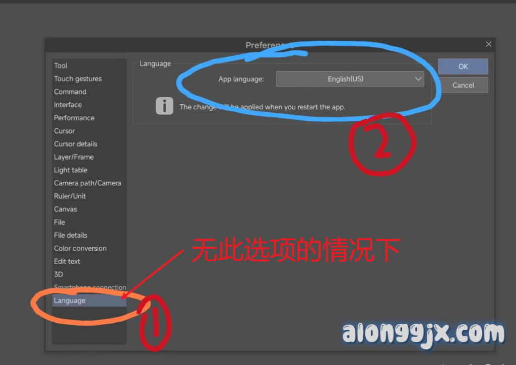 本文主要解决Clip Studio Paint EX软件设置选项中没有language选项,软件无法切换中文界面。话不多说直接上解决办法。