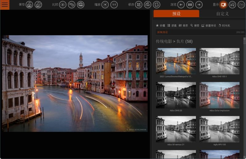 - 黑房间工具:包括胶片特效、粒度、暗角和模糊等工具,用户可以通过这些工具来增强照片的艺术表现力。