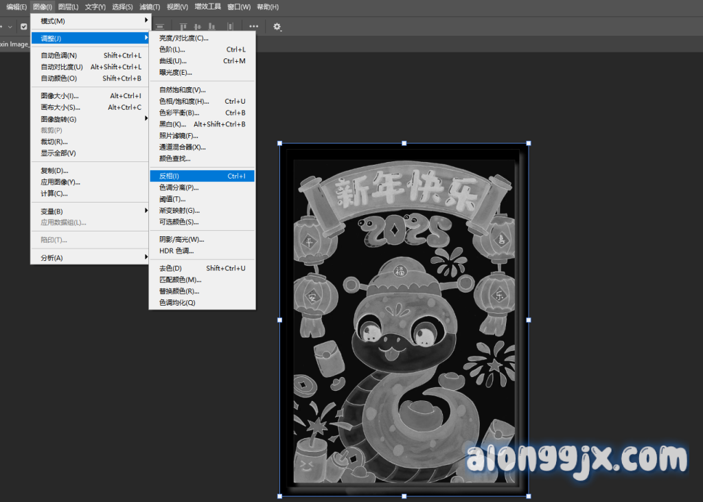 3、选中复制图层,菜单中一次选择图像-调整-反向,将照片转化为底片。