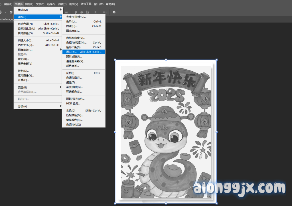 1、我们在photoshop菜单中一次选择图像-调整-黑白,将照片转化为黑白照片。