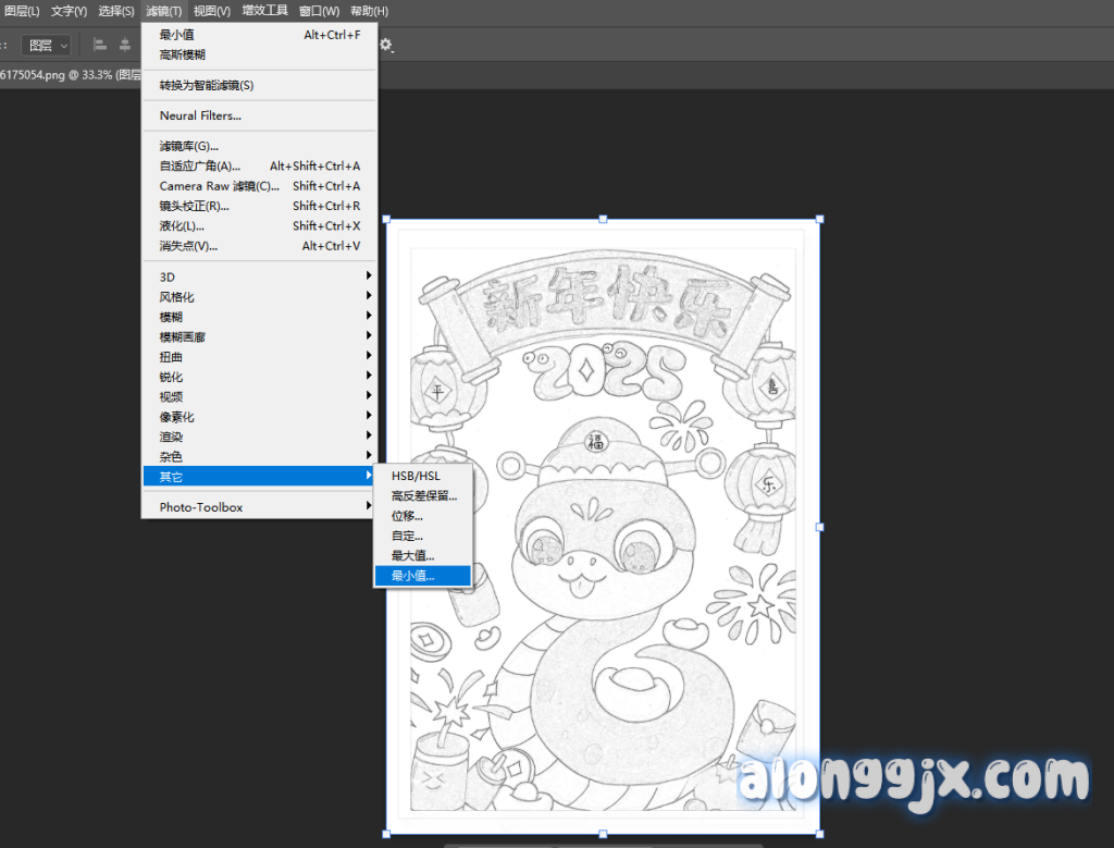 5、菜单栏滤镜-其他-最小值设置为1,可以更改这个数值来调整图片线条的粗细和阴影直到满意为止。