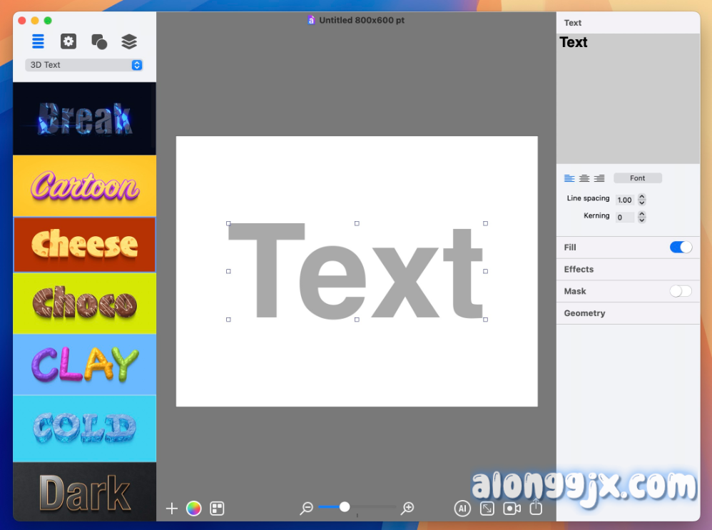 - 文本效果与排版:Art Text提供广泛的文本样式、表面材质和效果,让用户的创造力在易于调整的纹理、表面凹凸图、环境纹理、光斑和阴影等设置中自由发挥。